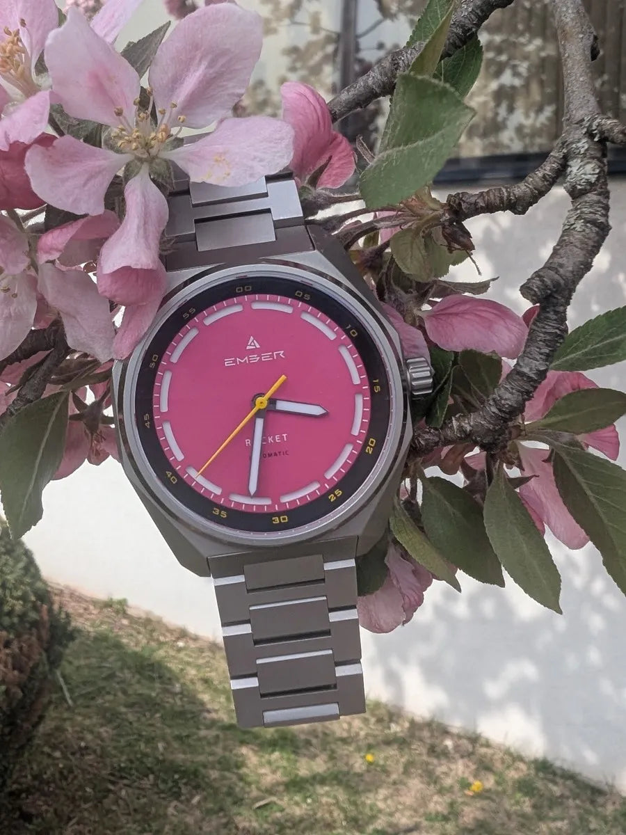 "The first thing I noticed when I opened the box was the bright dial. The Skyline Pink colorway is not one to be ignored".